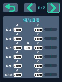 用于对几个按键通道的行程设置,默认是 -100 和100%,可调节范围为 0 至 正负 120%。行程可以同比例缩小,也可以设置单边任意行程值。