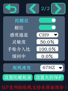 舵机速度: 当接收机输出的舵机信号和舵机的型号不一致的时候,舵机会发出“吱吱吱”的声音,抖动并伴随着发热,此时需要切换到正确的舵机模式。50HZ、67HZ为模拟舵机的频率,250HZ、300HZ为数字舵机的频率。